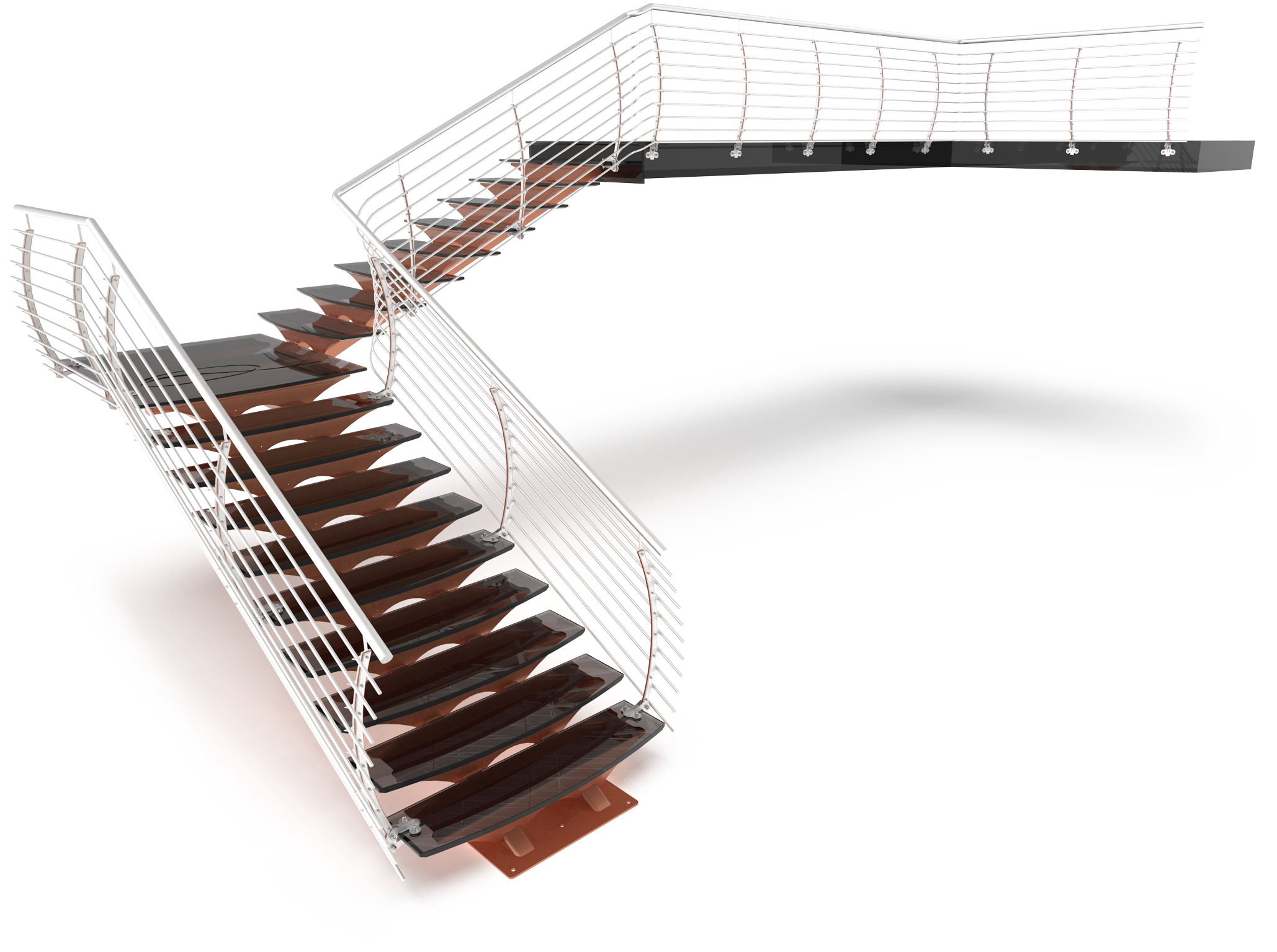 This staircase was designed and installed in the entrance section of a newly renovated factory and office.